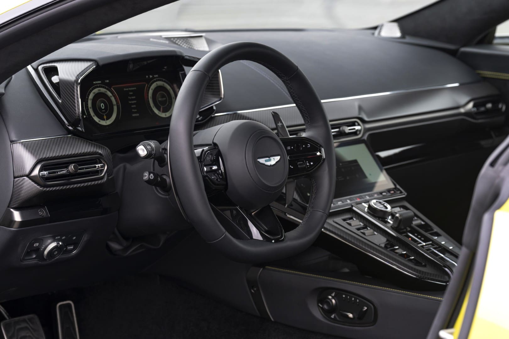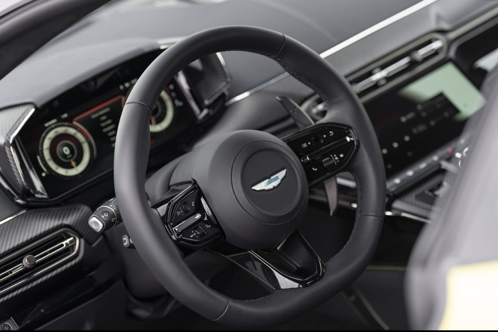 Descontando estos leves contratiempos, el renovado y amplio interior (solo para dos personas) resalta por su modernidad, con pantallas digitales, volante con interruptores capacitivos y una práctica palanca de cambios giratoria que reemplaza los antiguos botones de Aston Martin.