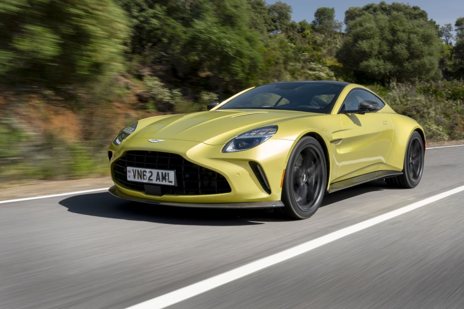 El Vantage se conduce como aparenta su aspecto. Hay una verdadera euforia en él, y aunque puede sentirse rígido en algunas condiciones, sobre todo si las imperfecciones en la carretera o los obstáculos para regular la velocidad son pronunciados, los amortiguadores adaptativos Bilstein DTX, un diferencial trasero de control electrónico y sistemas de control de estabilidad y tracción revisados, ayudan tremendamente a agudizar el comportamiento dinámico del Vantage.