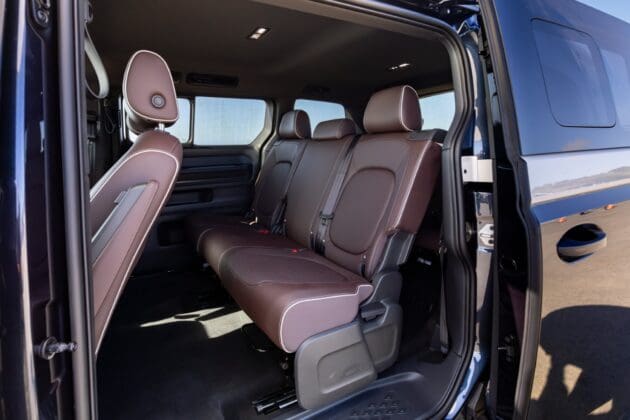 El espacio es abundante en cualquier parte, y hay espacios, incluyendo algunos fuera de la vista para llevar cualquier cantidad de artilugios. La configuración estándar es de siete asientos, pero puede conseguirse con sillas de capitán y transporta seis pasajeros. En la tercera fila hay espacio suficiente para adultos, pero los asientos si bien pueden plegarse sobre los respaldos permitiendo un espacio de carga plano, no se ocultan a nivel del piso como algunos minivanes. Vale aclarar que los asientos se pueden remover, pero no sin algún esfuerzo. A pesar de tener un piso plano, el acceso puede dificultarse para personas pequeñas o con limitaciones de movilidad pues el paso de entrada es muy alto.