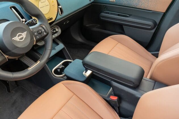 Aunque Apple CarPlay y Android Auto están disponibles de forma inalámbrica, solo ocupan un pequeño cuadrado en el medio de la gran pantalla, rodeado de otras opciones de menú poco necesarios cuando utilizas alguna de estas utilidades. El Mini viene con un buen número de características estándar de asistencia al conductor, incluyendo advertencia de colisión frontal, asistencia para mantener el carril y una pantalla de proyección frontal.