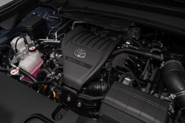 Nosotros probamos un Grand Highlander Nightshade con el motor más débil y con un peso de 4.620 libras o 2.095 kilogramos, que puede sentirse algo forzado en ciertas situaciones. Cuenta con opciones de conducción como Normal, Eco, EV y Sport, que adicionan algo de aliento a la conducción, que, por otra parte, es más bien calmada.