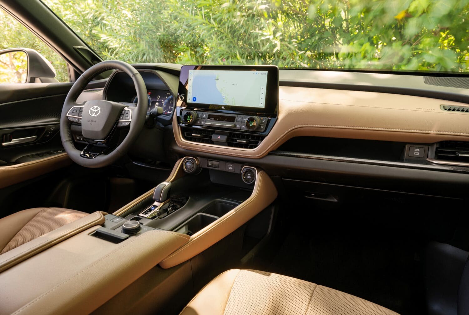 El Grand Highlander híbrido en todos los niveles de acabado tiene una pantalla táctil de infoentretenimiento de 12,3 pulgadas (32 centímetros), conexión inalámbrica con Amazon Alexa, Apple Carplay y Android Auto, navegación integrada, radio satelital, cinco puertos USB, y un punto de acceso Wi-Fi, por lo que podemos considerar que viene bien equipado.