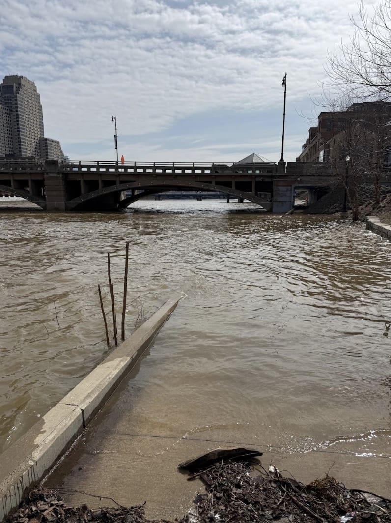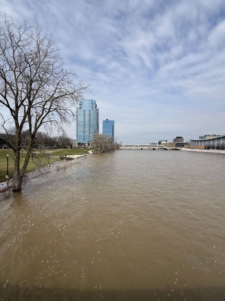 El nivel del Grand River se encuentra en ascenso y podría superar el umbral de inundación durante estos días, de acuerdo con los pronósticos más recientes del Servicio Meteorológico Nacional.