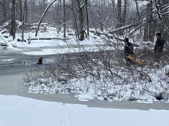 De acuerdo con el reporte, la unidad Rescue 5 de Alpine Fire Department acudió al lugar y sus elementos se colocaron trajes especiales para rescate en hielo antes de ingresar al agua, que alcanzaba una profundidad hasta el pecho. El operativo permitió rescatar con éxito a “Schatzi”, una perra de familia que había caminado sobre una capa de hielo inestable y terminó cayendo al río sin poder salir por sus propios medios.