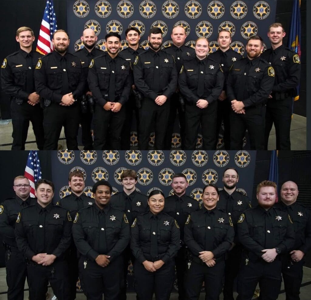 La semana pasada, la sheriff Michelle LaJoye-Young y el subsheriff Bryan Muir tuvieron el privilegio de dar la bienvenida a 23 nuevos miembros a la oficina del sheriff del condado de Kent: 11 agentes correccionales, 11 agentes de patrulla de carretera y un especialista en la unidad de escena del crimen.