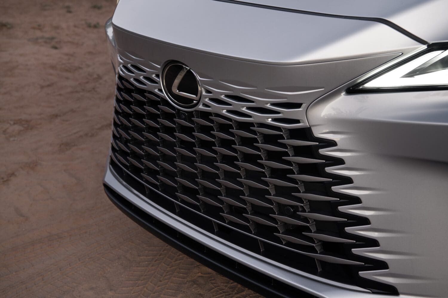 El RX tiene un estilo angular y deportivo, bastante equilibrado y llamativo. Al frente destaca la amplia parrilla en forma de huso, característica de la marca, que aquí me parece más integrada al conjunto, quizá por el efecto visual que provocan las grandes tomas de aire laterales. Creo que ayuda que la parrilla tenga una versión propia, algo más refinada, en este modelo.