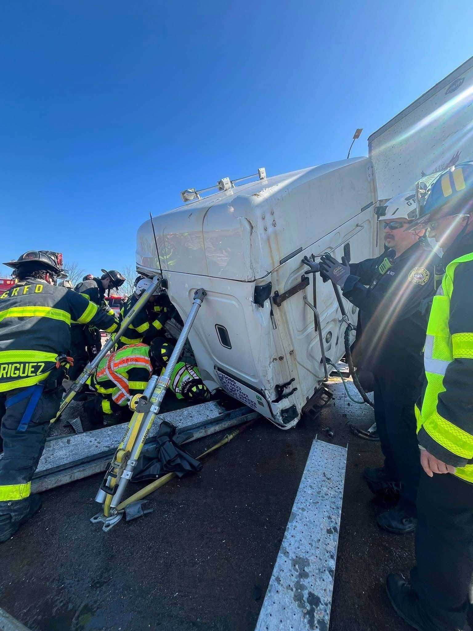 De acuerdo con el reporte oficial, elementos del Walker Fire Department acudieron al lugar tras recibir el llamado de emergencia que alertaba sobre una persona prensada al interior de un camión de carga. Al confirmar la complejidad de la situación, se solicitó apoyo adicional al Grand Rapids Fire Department, cuyos equipos especializados se sumaron rápidamente a las labores.