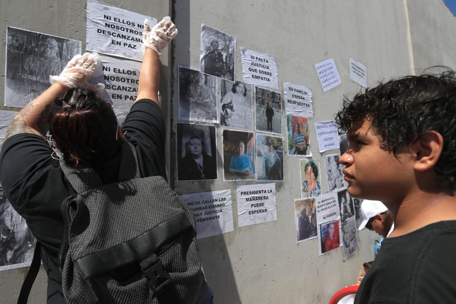 “Dijeron que los cuerpos todos estaban vestidos y que era muy fácil de identificarlos. Ahora traemos fotos donde la mayoría de los cuerpos están desnudos. Están unos arriba de otros, no estaban en bolsas. Esto es algo espantoso para las familias, estar pensando que nuestros seres queridos están allí”, denunció Norma Patricia Trevizo, una de las participantes en la protesta.
