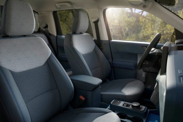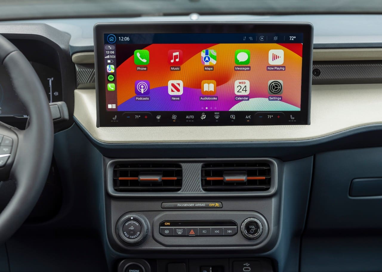 La nueva Maverick también actualiza su sistema de información y entretenimiento, que trae una pantalla estándar de 13.2 pulgadas o 33 centímetros. El sistema está bien organizado y responde con rapidez. Apple CarPlay y Android Auto inalámbricos también son características estándar, e incluso el modelo básico viene con un punto de acceso Wi-Fi a bordo. Las opciones incluyen radio satelital, un sistema estéreo B&O Play y capacidad de carga inalámbrica para teléfonos.