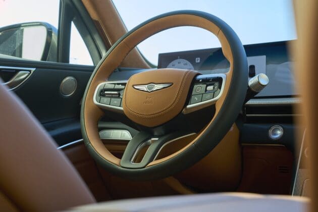 Otros cambios notables en el diseño del GV80 2025 incluyen un clip frontal más agresivo y una placa de deslizamiento en el parachoques para añadir un toque más robusto al aspecto urbano del GV80. La típica línea de techo más inclinada conduce a una cola tipo hatchback con spoiler integrado.