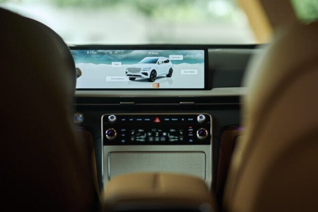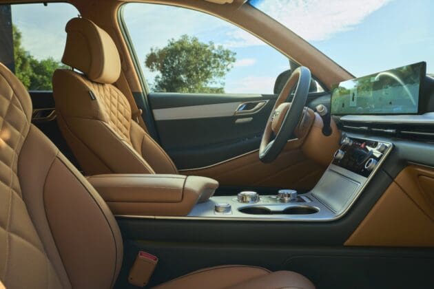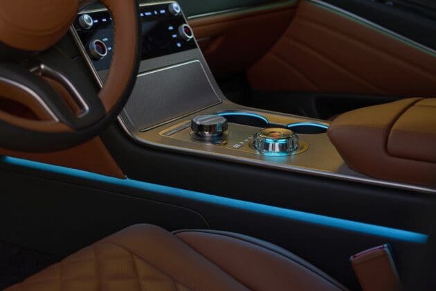 Los interiores de Genesis muestran el lujo sin restricción, con excelentes materiales y ensamblado, y han incorporado lujosas características de forma estándar o como opciones, como reposabrazos con calefacción, un difusor de fragancia y un dispositivo que utiliza luz UV para desinfectar los teléfonos.