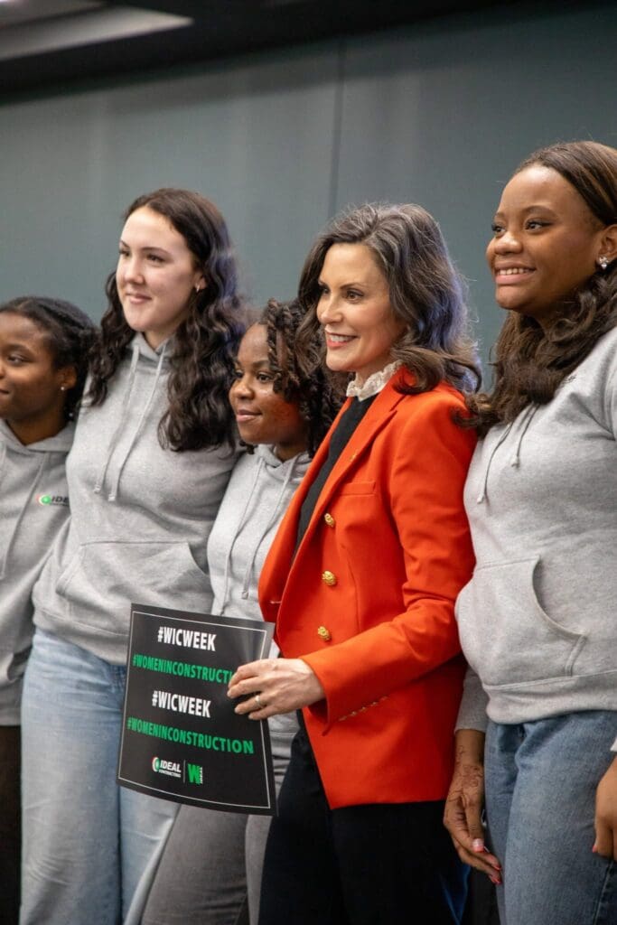 La gobernadora de Michigan, Gretchen Whitmer, participó en un evento en el Centro de Entrenamiento Calificado de Carpinteros y Millwrights para conmemorar la Semana de la Mujer en la Construcción, donde convivió con jóvenes interesadas en desarrollar una carrera en los oficios especializados.
