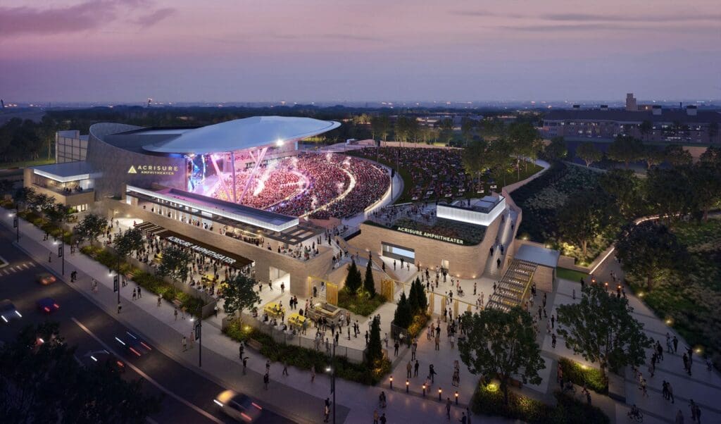 El Anfiteatro Acrisure, cuya inauguración está prevista para mayo de 2026, se construirá a orillas del río Grand y tendrá capacidad para más de 12,000 personas. Se trata de un espacio moderno para las artes escénicas, diseñado para albergar conciertos de gran escala, así como talento local. Con más de 300,000 visitantes anuales previstos, el recinto incluirá áreas VIP, terrazas, césped, suites y diversas opciones de precio para el público.