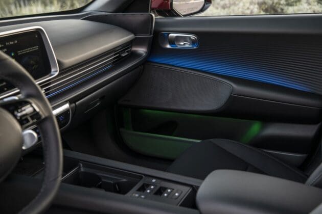 Aunque moderno, advierto cierta inspiración “retro” en el diseño, al que agregan detalles llamativos como la iluminación por píxeles, que se está convirtiendo rápidamente en una huella de Hyundai.