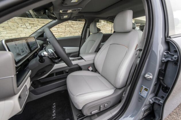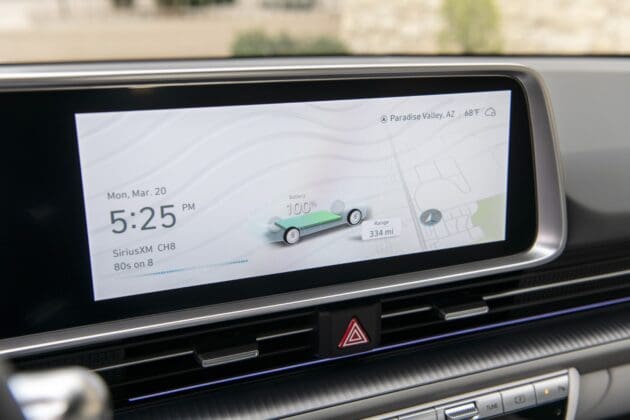 La calidad de construcción es excelente y los materiales de mejor calidad que en el Ioniq 5, aunque encontramos muchos plásticos duros que son más bien habituales en autos eléctricos de esta categoría. La arquitectura de los autos eléctricos permite una sensación de espacio interior muy amplia, y en el Ioniq 5 el lugar para los pasajeros en muy generoso en cualquier asiento, sin embargo, tiene 11.2 pies cúbicos de capacidad en el maletero, lo cual está por debajo del promedio para un auto eléctrico de este tipo. Hay un pequeño espacio de almacenamiento de 0.5 pies cúbicos debajo del capó, en lo que han dado en llamar “frunk”.