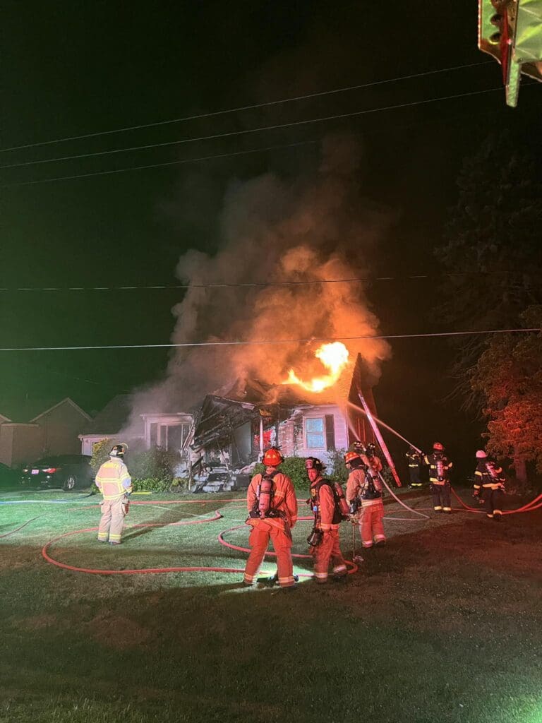 Bomberos de Walker mientras extinguen incendio en una casa en la cuadra 200 de Cummings Avenue. (Foto: Bomberos de Walker)