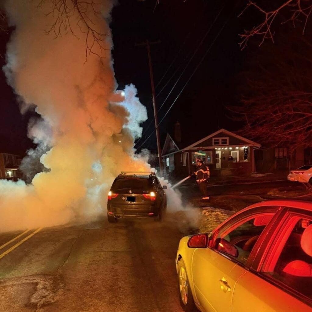 Durante la madrugada del martes, la Compañía de Motores 10 respondió a un incendio vehicular registrado en la intersección de Alger Street y Francis Avenue SE, en el sureste de Grand Rapids.