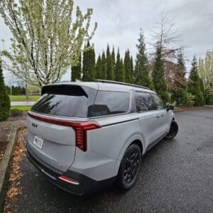 El Kia Carnival Híbrido 2025 viene en cuatro versiones: LXS que es el modelo base y comienza en los $40,500, seguido del EX, SX y el SX Prestige como el que probamos con precio inicial de $52,600. En este modelo el paquete de asientos VIP Lounge está disponible sin costo adicional. Incluye asientos tipo capitán de la segunda fila con calefacción, ventilación y reclinación eléctrica con extensiones para las piernas e iluminación ambiental. El paquete de entretenimiento en el asiento trasero por $2,500 agrega un sistema de doble pantalla, algo recomendable si piensa transportar pequeños con frecuencia en este Kia.