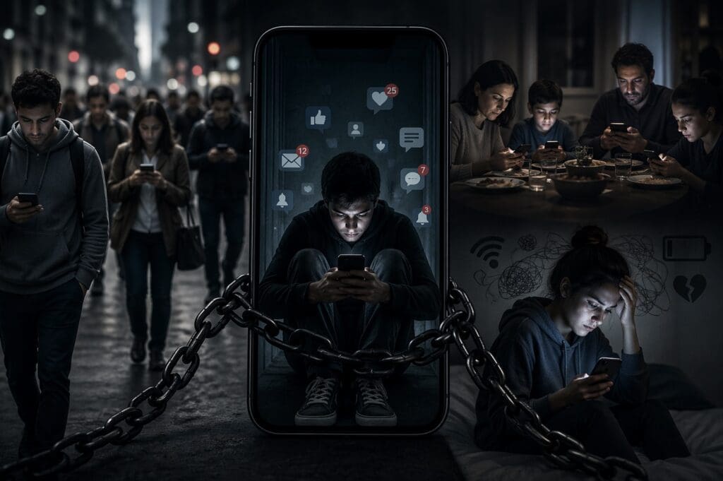 Basta con observar cualquier espacio público para notarlo. Personas caminando sin despegar la vista de la pantalla, familias reunidas donde cada integrante está absorto en su propio dispositivo, o jóvenes que no pueden sostener una conversación sin revisar notificaciones cada pocos minutos. Lo que antes parecía un hábito inofensivo hoy muestra señales claras de dependencia.