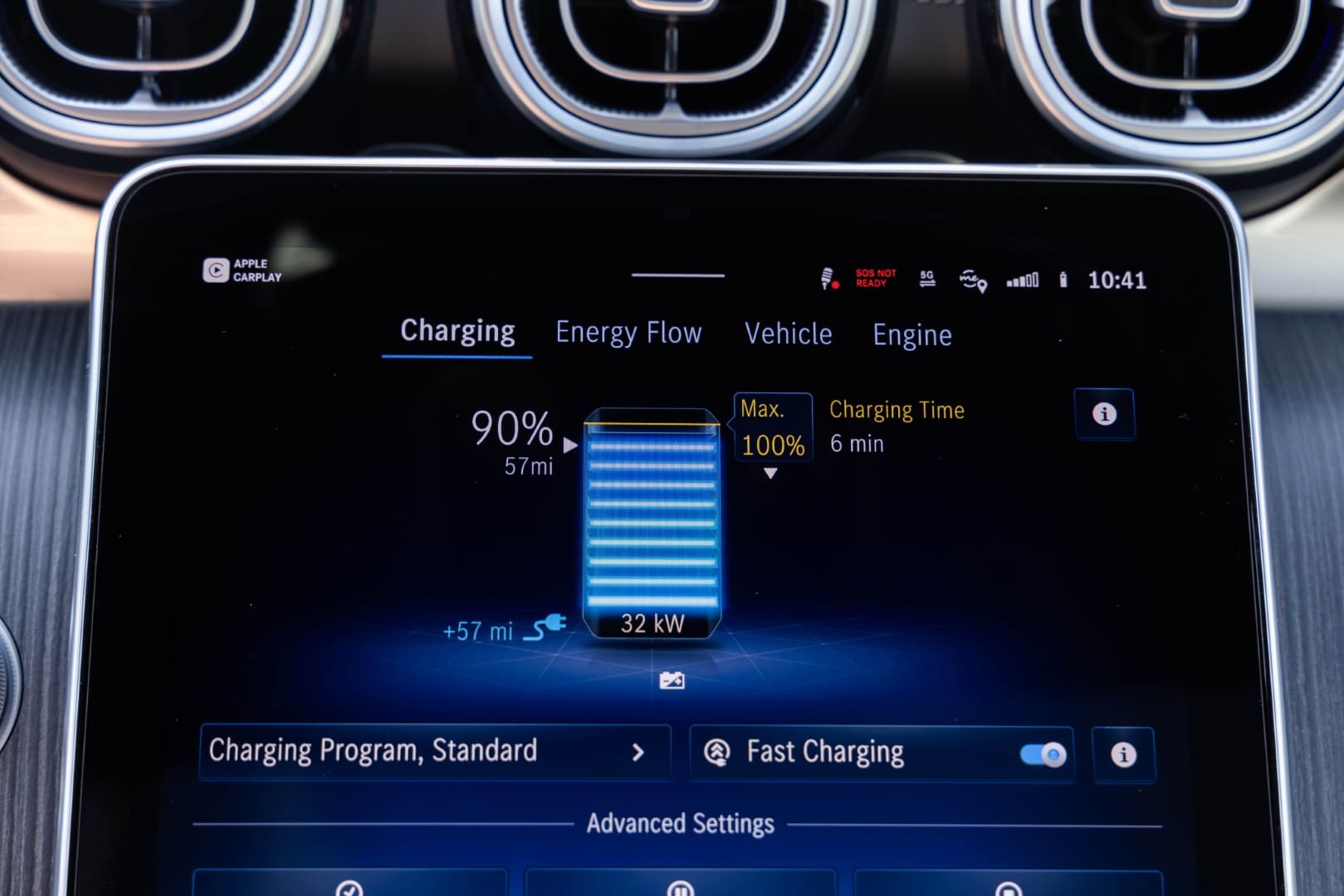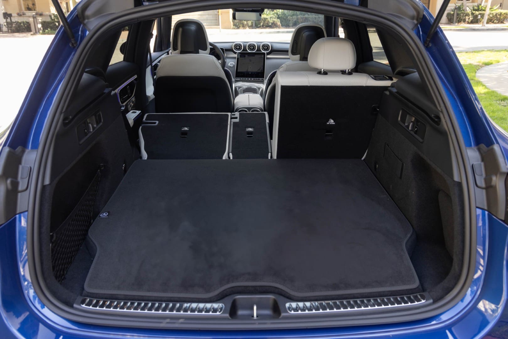El acabado y la calidad de los materiales están bien equiparados con el precio de este Mercedes, que comienza por encima de los $60,000. El SUV GLC estándar tiene 21,9 pies cúbicos de espacio de carga detrás de la segunda fila, sin embargo, la batería adicional del GLC PHEV reduce ligeramente este espacio.