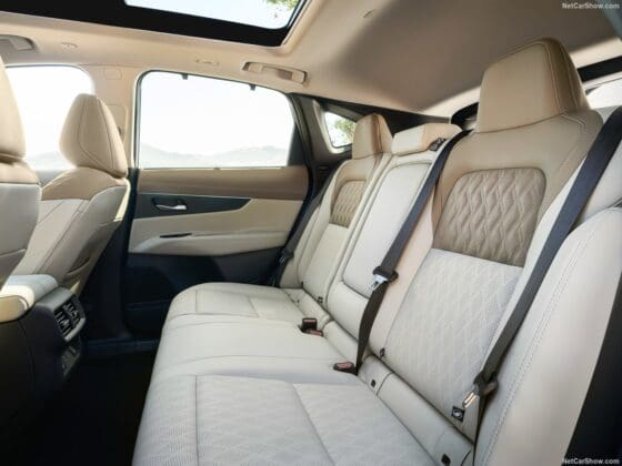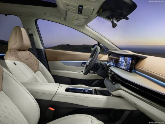 Como he precisado antes, es el interior uno de los factores determinantes para cerrar una venta en los concesionarios, y el del Nissan Murano tiene todos los elementos necesarios para suscitar interés en los compradores. La cabina también toma prestados elementos del eléctrico Ariya, lo que no es una mala estrategia, con botones táctiles capacitivos similares para las funciones de control de clima, y materiales naturales que fluyen a través del tablero.