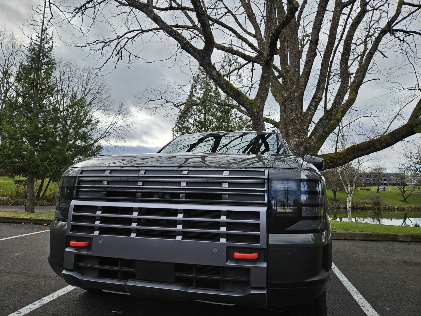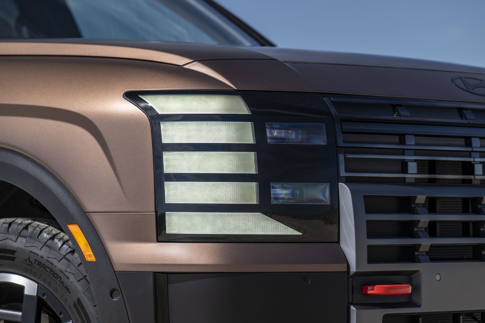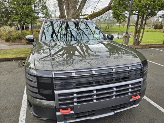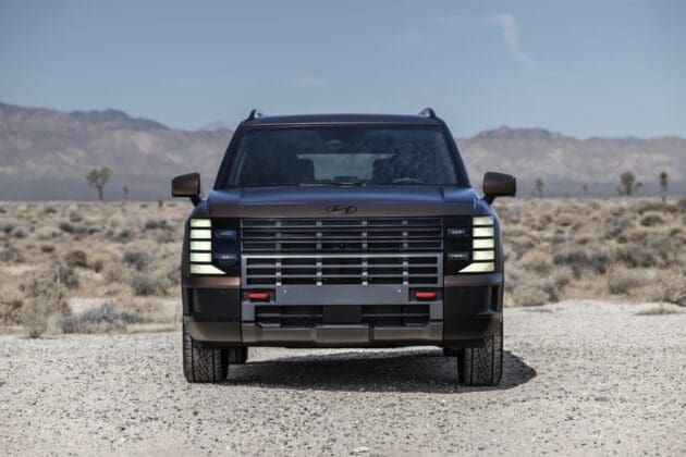 No es difícil notar que el Palisade 2026 expone muchos de los atributos más notables de algunos Range Rover, especialmente de la generación L405. Copiando o no, logran que el Palisade sea distinto de otros SUV. Se percibe elegante, moderno y, sobre todo, robusto, más aún en el acabado XRT Pro con ganchos de remolque naranja al frente, neumáticos todoterreno y una parrilla masiva, quizá demasiado dramática.