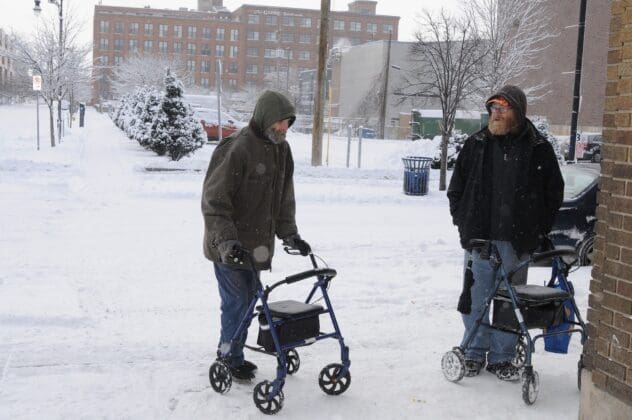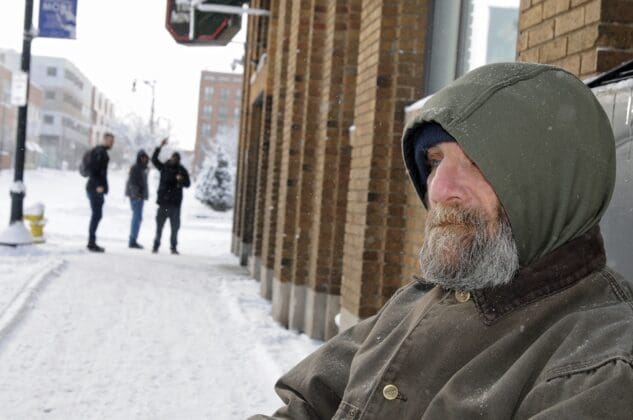 Carl Gorney, de 64 años, de Grand Rapids, quien se encuentra sin techo, era una de las personas que esperaba entrar al refugio Mel Trotter en la ciudad el martes por la mañana.