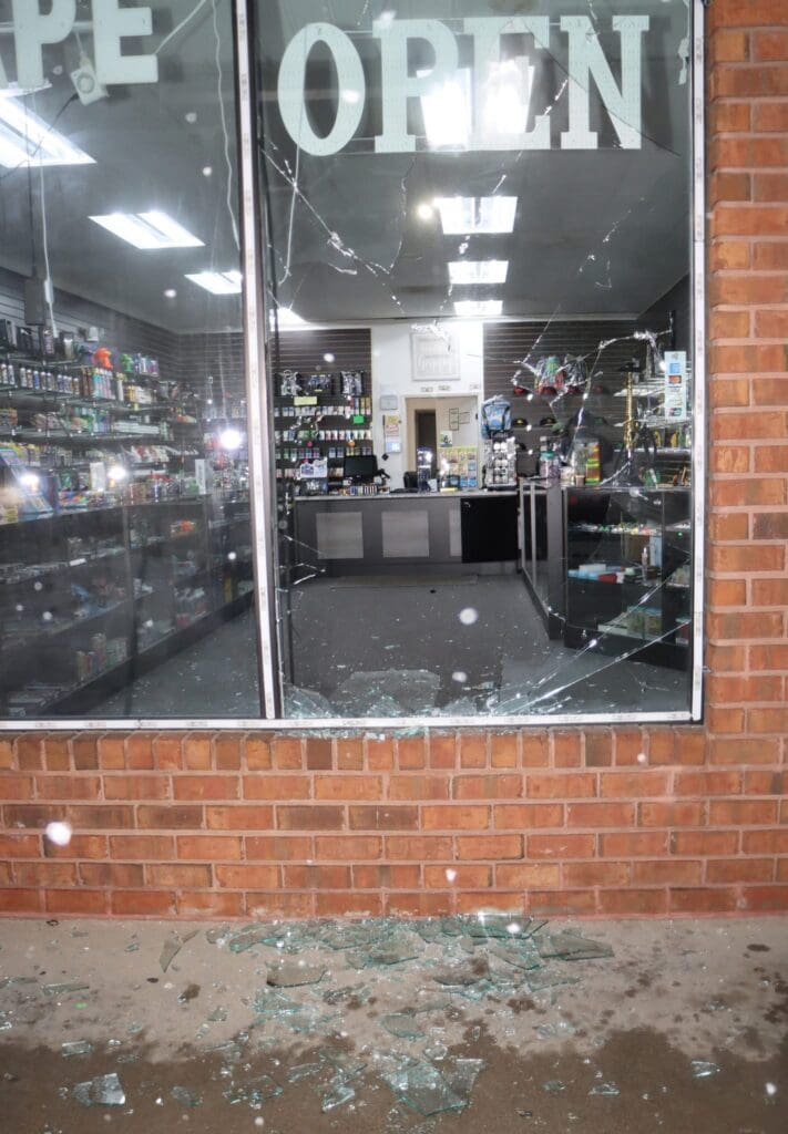 Mientras se desarrollaba la investigación en Alpine, una segunda alarma se activó en un negocio de características similares ubicado en el lado opuesto de la ciudad, en el área de Standale. Al arribar a este segundo sitio, los oficiales encontraron la ventana principal destrozada y confirmaron que varios sujetos lograron ingresar al local, de donde sustrajeron diversos artículos.
