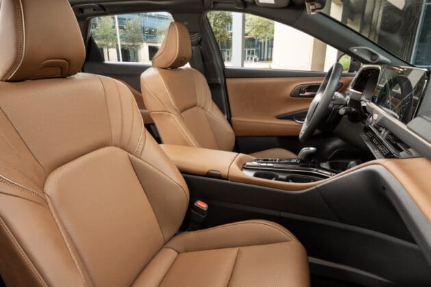 El interior es lujoso, con materiales de primera calidad y tapicería de cuero de serie en los dos acabados, lo que alude más a Lexus que Toyota. Tiene varios detalles en bronce metalizado y se ofrecen dos colores interiores: negro y saddle tan. El acabado superior Limited incluye un equipo estéreo JBL de 11 altavoces, un techo panorámico de cristal fijo e iluminación interior ambiental.
